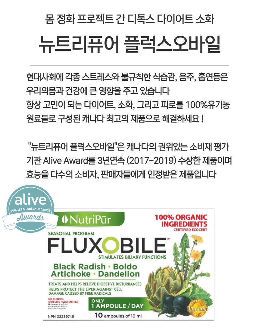 뉴트리퓨어 / 100%유기농 디톡스 간정화 다이어트 - 플럭스오바일 (10앰플 / 10일치)SALEBESTMD