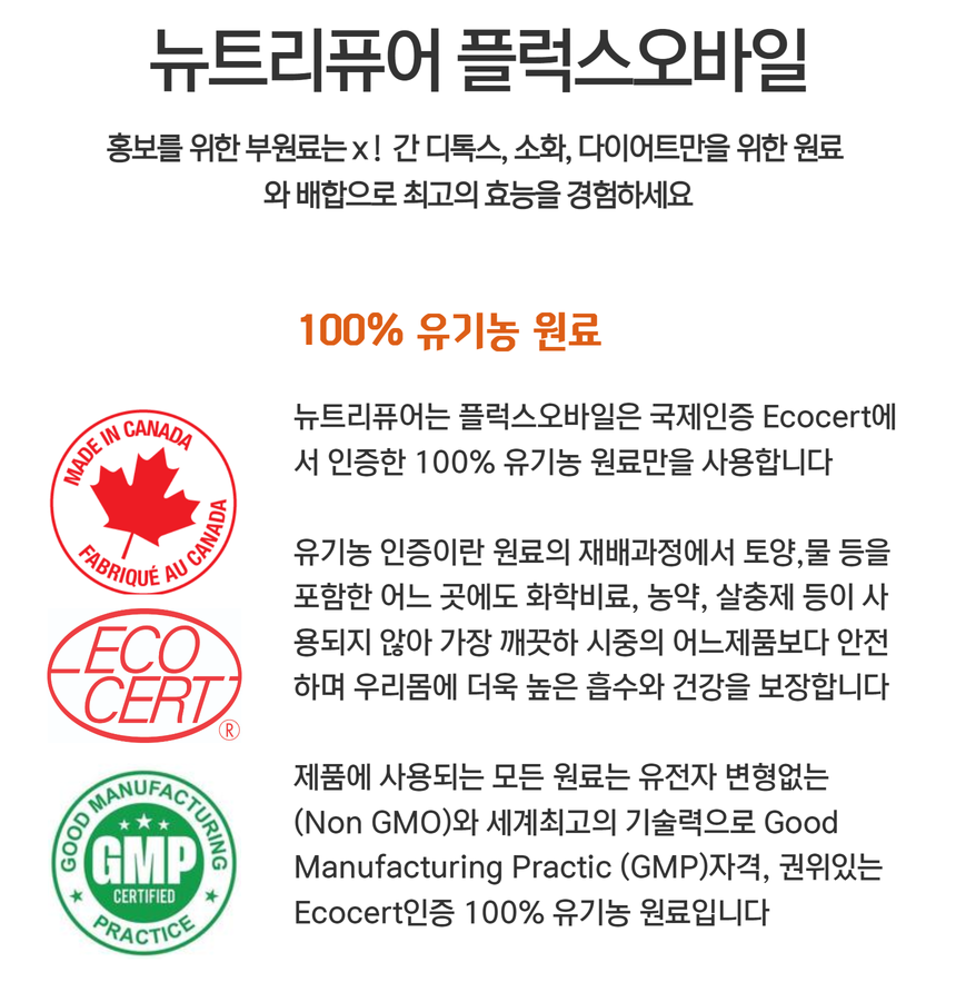 - 100% 유기농 원료. 캐나다 최고의 디톡스, 다이어트, 소화 제품으로 건강과 에너지를 회복하세요 !