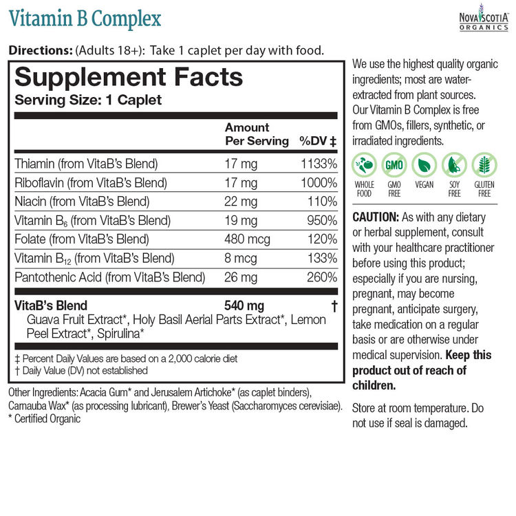 100% 유기농, 천연 비타민 B 컴플렉스(USDA Certified)