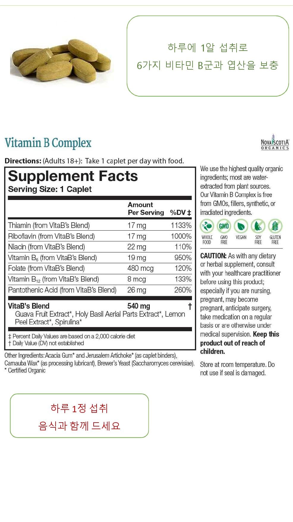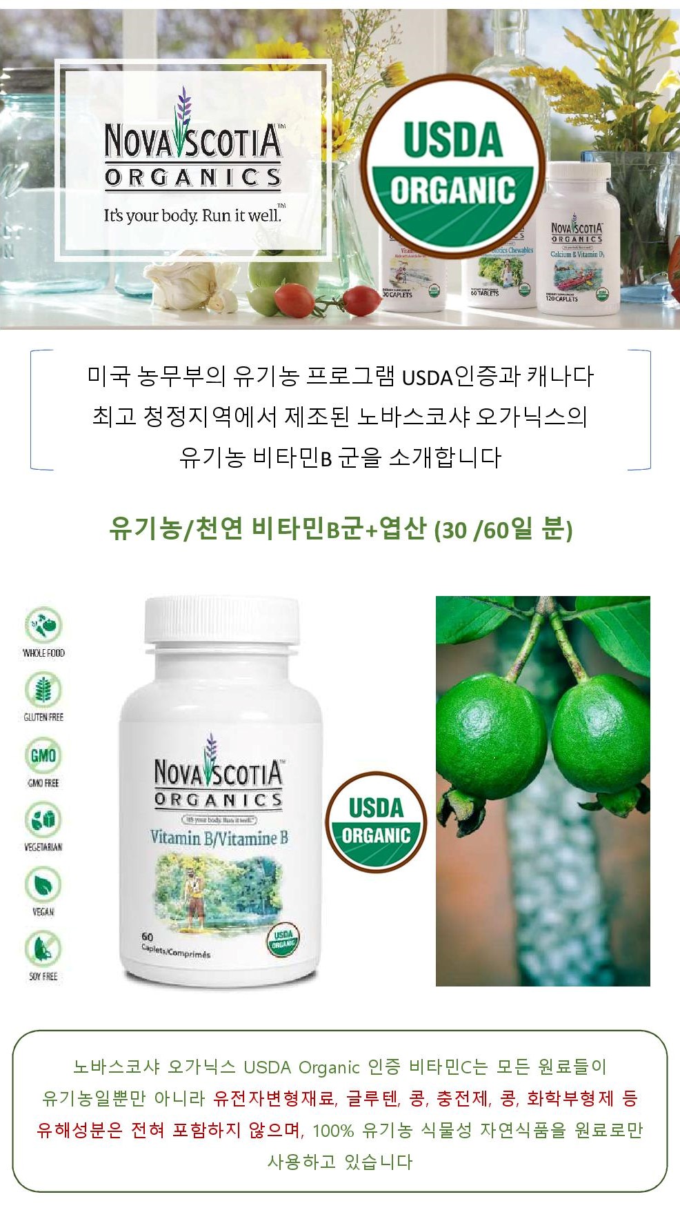 유기농 비타민B / USDA유기농 인증 노바스코샤 오가닉스 (60정, 60일분)SOLDOUT